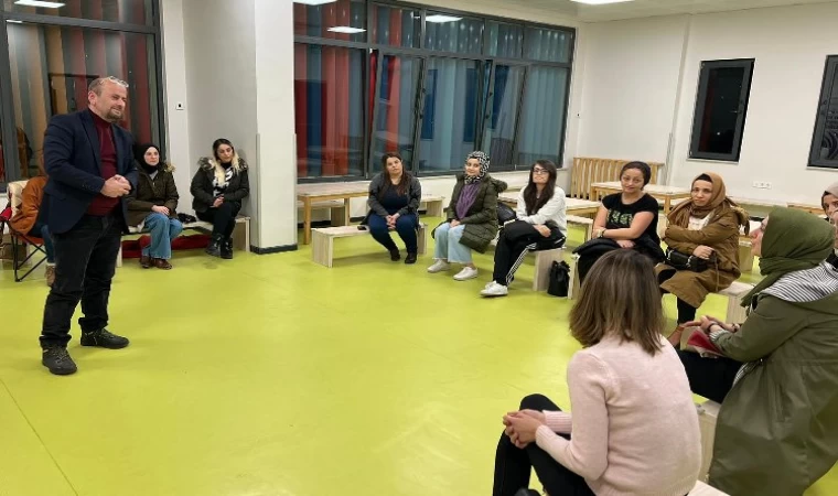Babalara yönelik düzenlenen eğitimlerin ardından, annelerle de toplantı yapıldı.