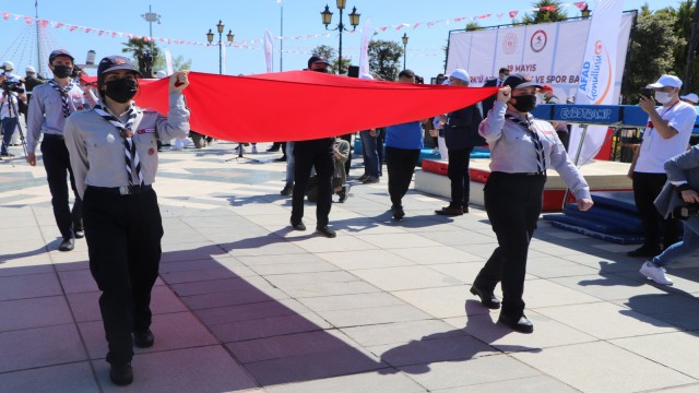 19 Mayıs 1919’un 102. yıl kutlamaları, saat 09.00’da Atatürk Anıtı’nda başladı. Anıta çelenk sunumuyla başlayan tören, saygı duruşunda bulunulması ve İstiklal Marşı’nın okunması ile devam etti. Anıttaki törenin arından Tütün İskelesi’ndeki tören alanına geçildi. Tören alanında Samsun Gençlik ve Spor Müdürlüğü’ne bağlı sporcuların gösterileri nefesleri kesti. Törende cimnastik, okçu, güreşçi sporcuları pandemi kuralları çerçevesinde gösterilerini yaptı. Akabinde 2 denizci ve 2 karacı asker ile birlikte 1 denizci subay, 19 Mayıs 1919 tarihinde Atatürk ve silah arkadaşlarının karaya çıkışını canlandırdı. Askerlerin ellerinde karaya çıkarılan Türk bayrağı, Samsun Valisi Doç. Dr. Zülkif Dağlı nezaretinde 5 izciye teslim edildi. Bir sonraki program için Bandırma Vapuru’na geçildi.