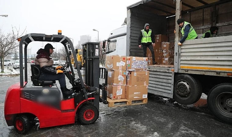 Öte yandan TIR’lara doldurulan yardım malzemeleri ağır hava şartlarının yaşandığı deprem bölgesine gönderildi. TIR’larda elektrikli ısıtıcı, battaniye, çadır, çocuk bezi, hijyen paketi, kışlık giyecek ve içinde meyve suyu, kek, ton balığı, konservenin bulunduğu gıda kolileri bulunuyor.