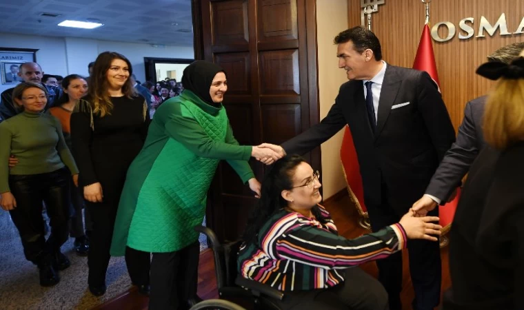 Bursa'da Osmangazi Belediye Başkanı Mustafa Dündar, Ramazan Bayramı öncesi son iş gününde belediye personeli ile bayramlaştı.