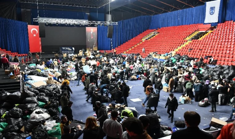 Deprem sonrası tüm ekiplerini seferber eden Ankara Büyükşehir Belediyesi vatandaşlarla birlikte gelen yardımların ayrıştırılması ve tasnifi için Ankara Spor Salonu ile Çevre Koruma ve Kontrol Daire Başkanlığı yerleşkesinde sabaha kadar mesai harcadı.