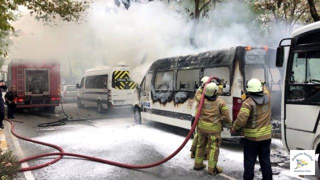 Olay yerine gelen ekipler, hemen yanan araca müdahale etti. Araç, söndürürken ekipler soğutma çalışması yaptı. Polis ekipleri ise olayla ilgili inceleme başlattı. Öte yandan servis aracı kullanılamaz hale geldi. -