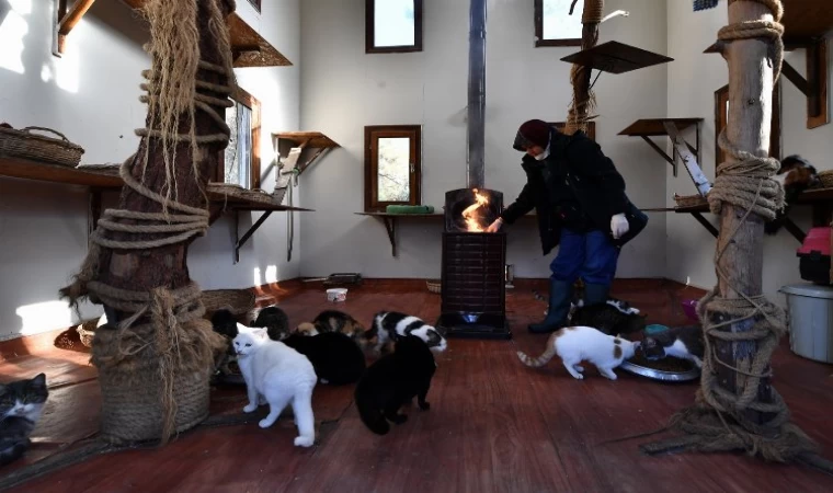 Bursa’da havaların soğumasıyla birlikte Osmangazi Belediyesi’nin Sahipsiz Hayvanlar Doğal Yaşam ve Tedavi Merkezi’ndeki özel villalarda yaşayan engelli kedilerin de soba keyfi başladı.