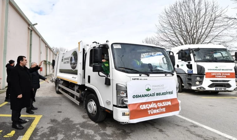 BURSA ( İGFA) - Arama kurtarma ekibinin yanı sıra araçlarının büyük bölümünü ve birçok personelini depremden etkilenen illere gönderen Bursa Osmangazi Belediyesi, enkaz kaldırma çalışmalarında kullanılmak üzere çöp kamyonları ve temizlik araçlarını da deprem bölgesine yolladı.