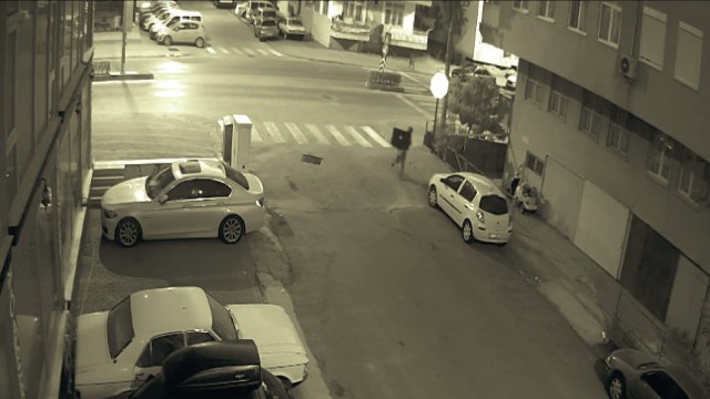 Şüphelilerden birinin evden çaldığı LCD televizyonu omuzlayıp caddede koşarak gitti anlar güvenlik kameralarınca kaydedilirken, hırsızın yolun karşısından gelen iki kişinin geçmesini bekledikten sonra koşarak gitmesi kayıtlara girdi.