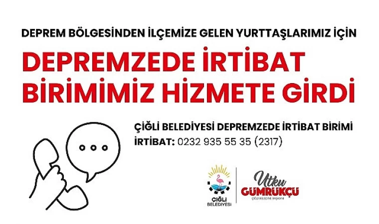 Başkan Utku Gümrükçü öncülüğünde depremin yaralarını sarmak için seferberlik ilan eden Çiğli Belediyesi, deprem dolayısıyla geçici süreliğine İzmir’e gelen kadın, çocuk, genç, yaşlı ve engelli yurttaşlar başta olmak üzere depremzedelerin talep ettikleri hizmete ulaşımı konusunda koordinasyonu sağlamak amacıyla Depremzede İrtibat Birimi kurdu. İrtibat Biriminde barınma, beslenme ve tedavi gibi temel ihtiyaçların koordinasyonunun yanı sıra psikolojik destek de sağlanacak. Destek almak isteyen depremzedeler 0232 935 55 35 (2317) numaralı hat üzerinden Çiğli Belediyesi Depremzede İrtibat Birimi ile iletişime geçebilecek.