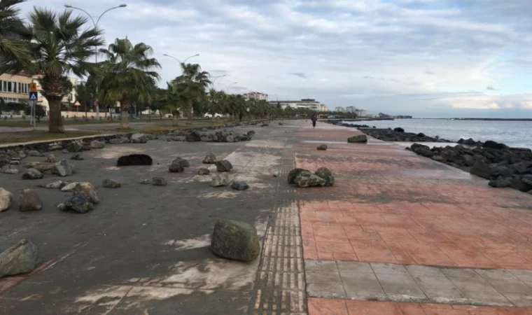 Şiddetli rüzgar nedeniyle Samsun sahil kenarında kaya parçaları ve taşlar oluştu. Belediye ekipleri, sahilde kapsamlı temizlik yaptı.
