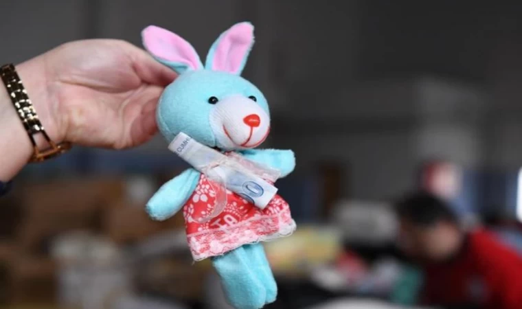 Erdoğan DEMİR / EDİRNE (İGFA) - Deprem bölgesine Keşan Lisesi Spor Salonu'nda toplanan yardım koliler arasında küçük bir çocuğun bağışı olan oyuncağın üzerine tutturulan harçlığı, duygulu anlar ve gözlerin dolmasına neden oldu.
