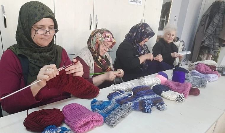Tire Halk Eğitimi Merkezi usta öğreticileri yürekleri biraz da olsa ısıtabilmek adına gece gündüz çalışarak deprem bölgesine gönderilmek üzere bere, atkı, kazak, eldiven gibi kışlık kıyafet dikiyor.