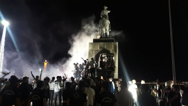 Süper Lig’in son haftasında Beşiktaş, İzmir deplasmanında Göztepe’yi 2-1 yenerek 2020-2021 sezonu şampiyonu oldu. Mücadelenin bitiş düdüğü itibariyle siyah-beyazlı taraftarlar Kordon’a indi. Sokağa çıkma yasağına rağmen yüzlere taraftar meşalelerle kutlama yaparken, polisler olası bir olumsuzluk olmaması adına geniş güvenlik önlemleri aldı.
