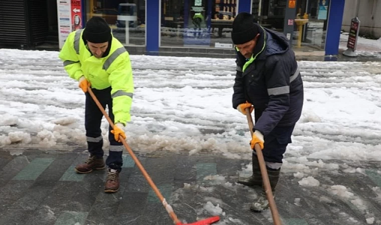 Araç ve ekiplerinin önemli bölümünü deprem bölgesine gönderen Büyükşehir, kent genelindeki yoğun kar yağışının hayatı olumsuz etkilememesi için gece gündüz çalışıyor