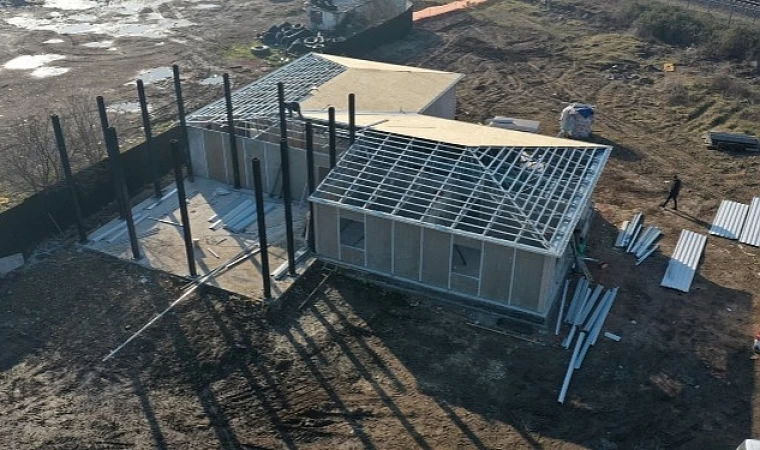 Ocak ayı içerisinde temeli atılan Acil Durum Merkezi prefabrik bir yapı olarak İzmit’te inşa ediliyor. Prefabrik yapının imalatı sürüyor. Acil Durum Merkezinin çatı imalatı da ekipler tarafından yapılıyor. Bina içerisinde ise elektrik tesisatı sürüyor.