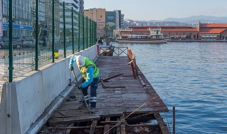 İzmir Büyükşehir Belediyesi, deniz suyunun etkisiyle çürüyerek yurttaşların can ve mal güvenliğini riske atan Konak Pier ve Pasaport Vapur İskelesi arasındaki üç seyir terasının sökümünü başlattı.