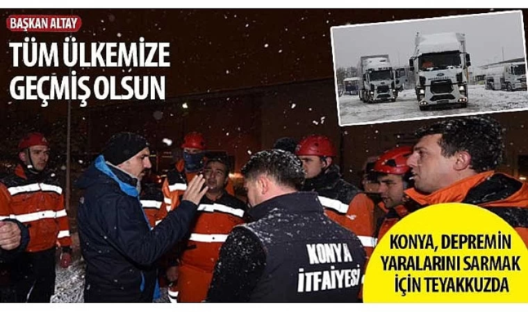 Konya Büyükşehir Belediyesi, sabaha karşı yola çıkan arama kurtarma ekiplerinin ardından sabah saatlerinde de Mobil Mutfak TIR’ları, su TIR’ı, telsiz istasyonları, mobil şarj istasyonları, ekskavatörler, loderler, aydınlatma kulesi, jeneratörler, seyyar tuvaletler ve hizmet araçları başta olmak üzere ilçe belediyeleri ile birlikte 68 aracı ilk etapta AFAD koordinasyonunda deprem bölgesine sevk etti. Konya’dan bu araçlarla birlikte, hasar tespit çalışmalarına katkı sağlamak için teknik personel dahil toplamda 146 personel de Hatay’a yola çıktı. İhtiyaca göre AFAD koordinasyonunda yeni ekipler yola çıkacak.