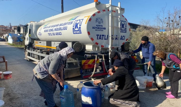 KONYA (İGFA) - Konya Büyükşehir Belediyesi, depremin hemen ardından arama kurtarma, destek ve yardım faaliyetleri için ulaştığı Hatay’da sağlıklı içme ve kullanma suyu ihtiyacına da çözüm üretiyor.