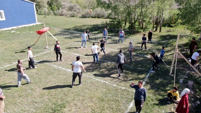 Sivas’ın Ulaş ilçesine bağlı Hacımirza köyünde köy sakinleri kendi imkanlarıyla oluşturdukları voleybol sahasında doyasıya eğlenirken, çocukları da spora teşvik ediyor.