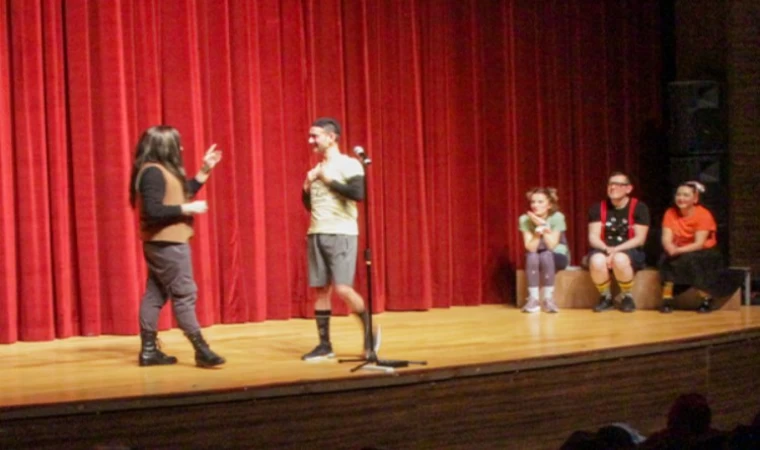 KÜTAHYA (İGFA) - Yoğunluk programından biraz olsun uzaklaşıp dinlenmek isteyen öğrenciler, Kütahya Belediyesi Akademi Tiyatro Topluluğu tarafından iki seans olarak sahnelenen, “Barış Manço ile Haydi Sahneye” gösterisini aileleriyle büyük ilgiyle izlediler.