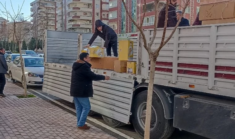 Şanlıurfa’ya ulaşan yardım tırındaki koliler depremzedelere dağıtılmaya başlanacak.