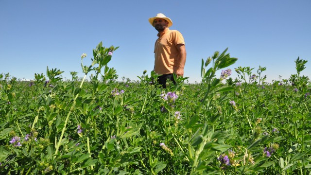 Mardinde buğday ve mısır yerine yonca eken çiftçinin yüzü güldü