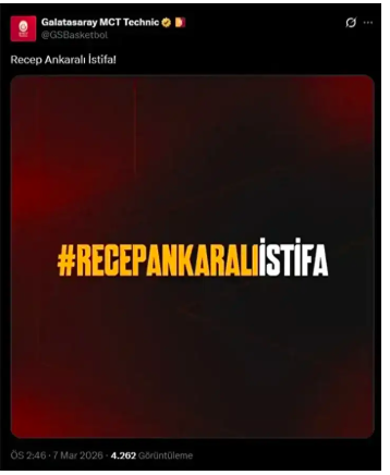 Galatasaray Spor Kulübü, Türkiye Basketbol Federasyonu (TBF) Merkez Hakem Kurulu (MHK) Başkanı Recep Ankaralı’yı istifaya davet etti. Sarı-kırmızılı kulüp, Türk Telekom ile oynanan karşılaşmada verilen hakem kararlarına tepki göstererek yaptığı açıklamada hakem yönetimini eleştirdi ve sorumluluğun MHK’de olduğunu savundu.
