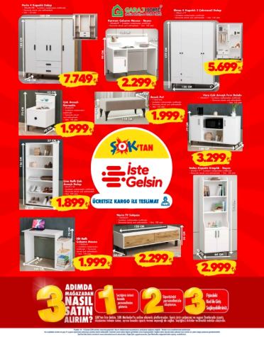 Bu haftaki ŞOK aktüel kataloğunda mobilya ürünleri dikkat çekiyor. Gardırop, çalışma masası, kitaplık ve TV sehpası gibi ürünlerin önemli bir kısmı ücretsiz kargo ile teslim edilecek.
