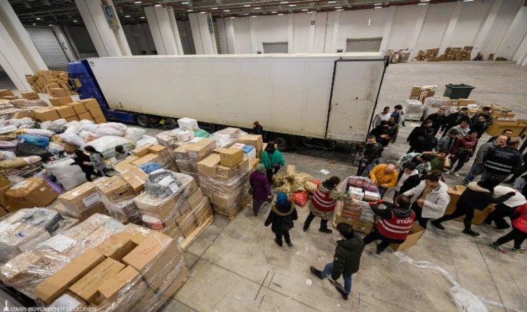 İzmir Büyükşehir Belediyesi’nin öncülüğünde seferber olan İzmir’den deprem bölgesine destekler artarak sürüyor. 3 günün sonunda 92 tır, 42 kamyon, 3 uçak ve 1 gemiyle gerekli malzemeler depremzedelere gönderildi. Başkan Tunç Soyer, “İnsani yardım malzemelerini deprem bölgesine ulaştırmaya devam ediyoruz. Destek kampanyamızı da büyüterek sürdürüyoruz" dedi.