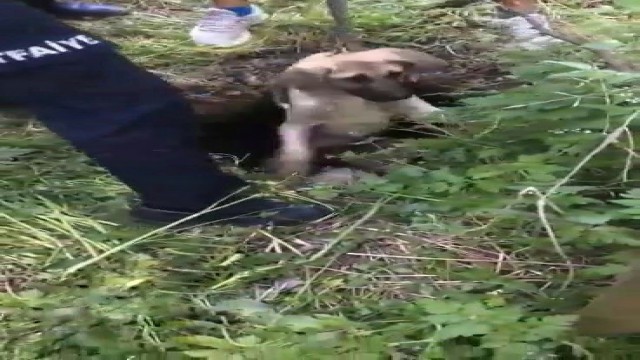 Su kuyusunda mahsur kalan köpekleri itfaiye ekipleri kurtardı