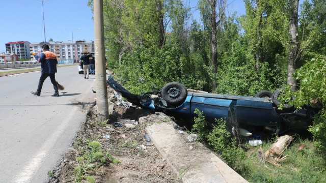 Virajı alamayan otomobil ters döndü: 2 yaralı