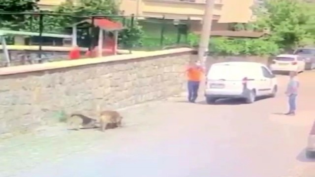Öte yandan o anlar bir iş yerinin güvenlik kamerası tarafından saniye saniye kaydedildi. Görüntülerde, hafif ticari aracın yolda yatan köpeğin üzerinden geçmesi, diğer köpeklerin can çekişen köpeğin yanına koşması, sürücünün aracından inerek bir süre beklemesi görülüyor.